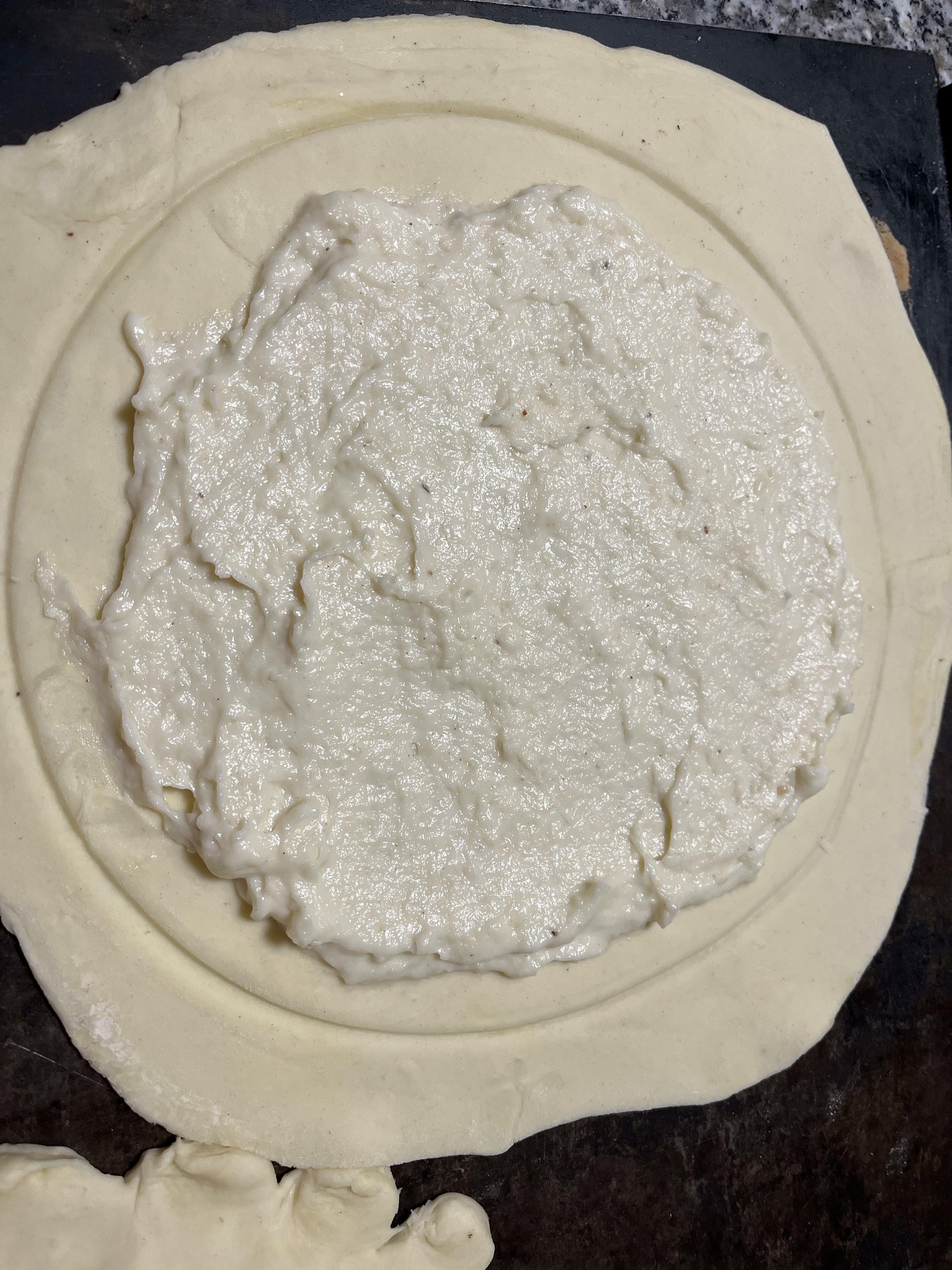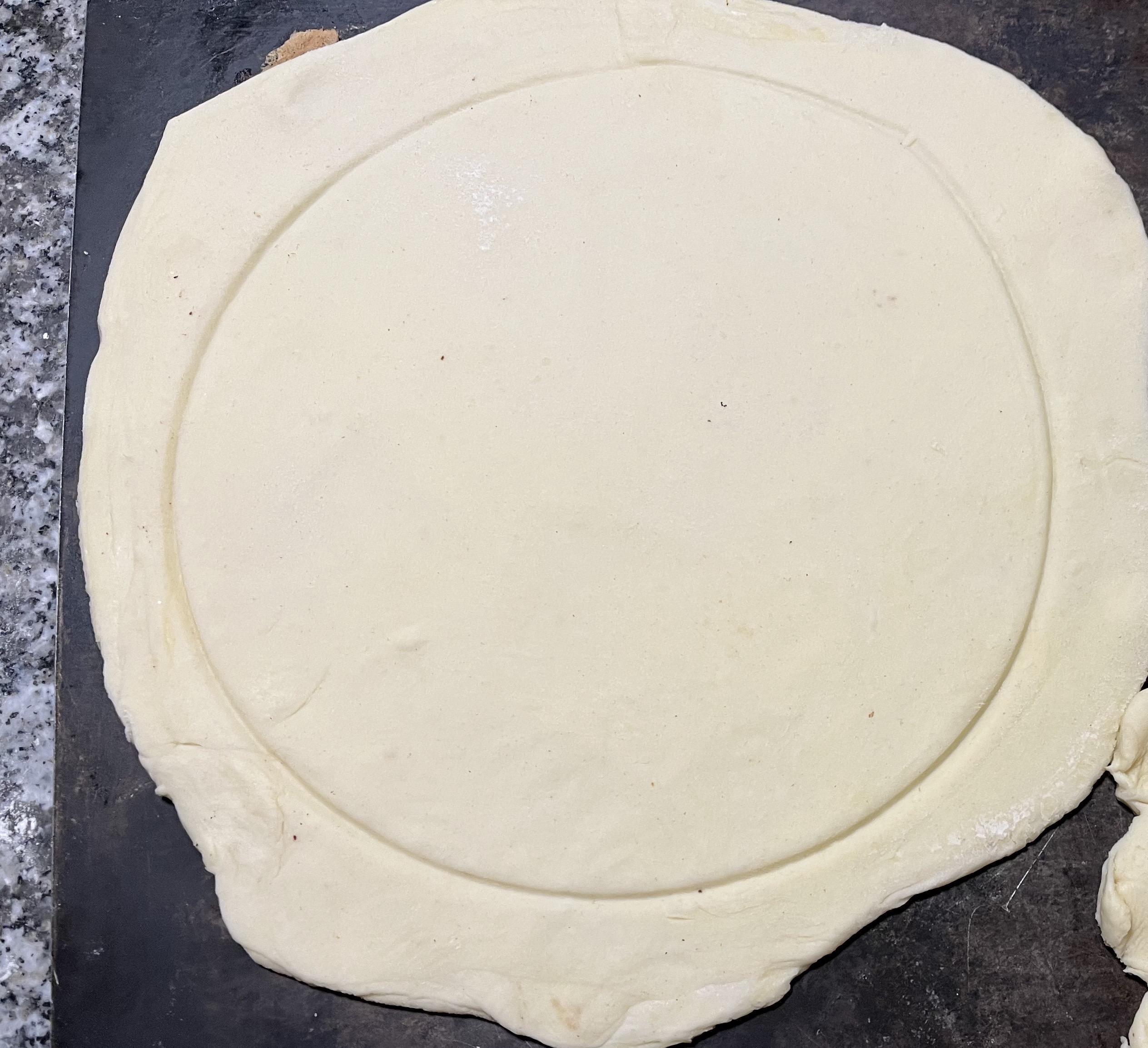 Préparer 2 abaisses de feuilletage de 24/25 cm de diamètre