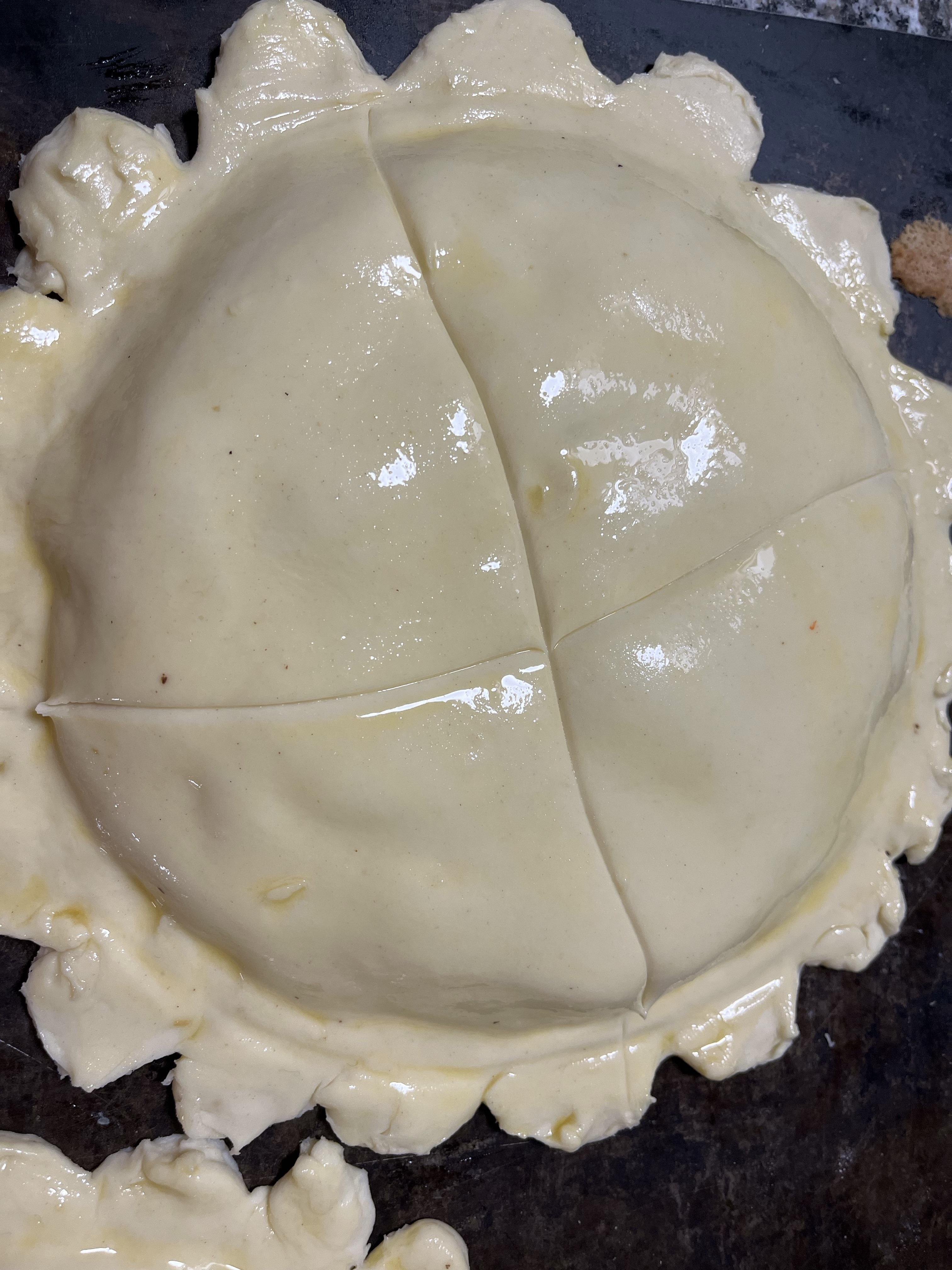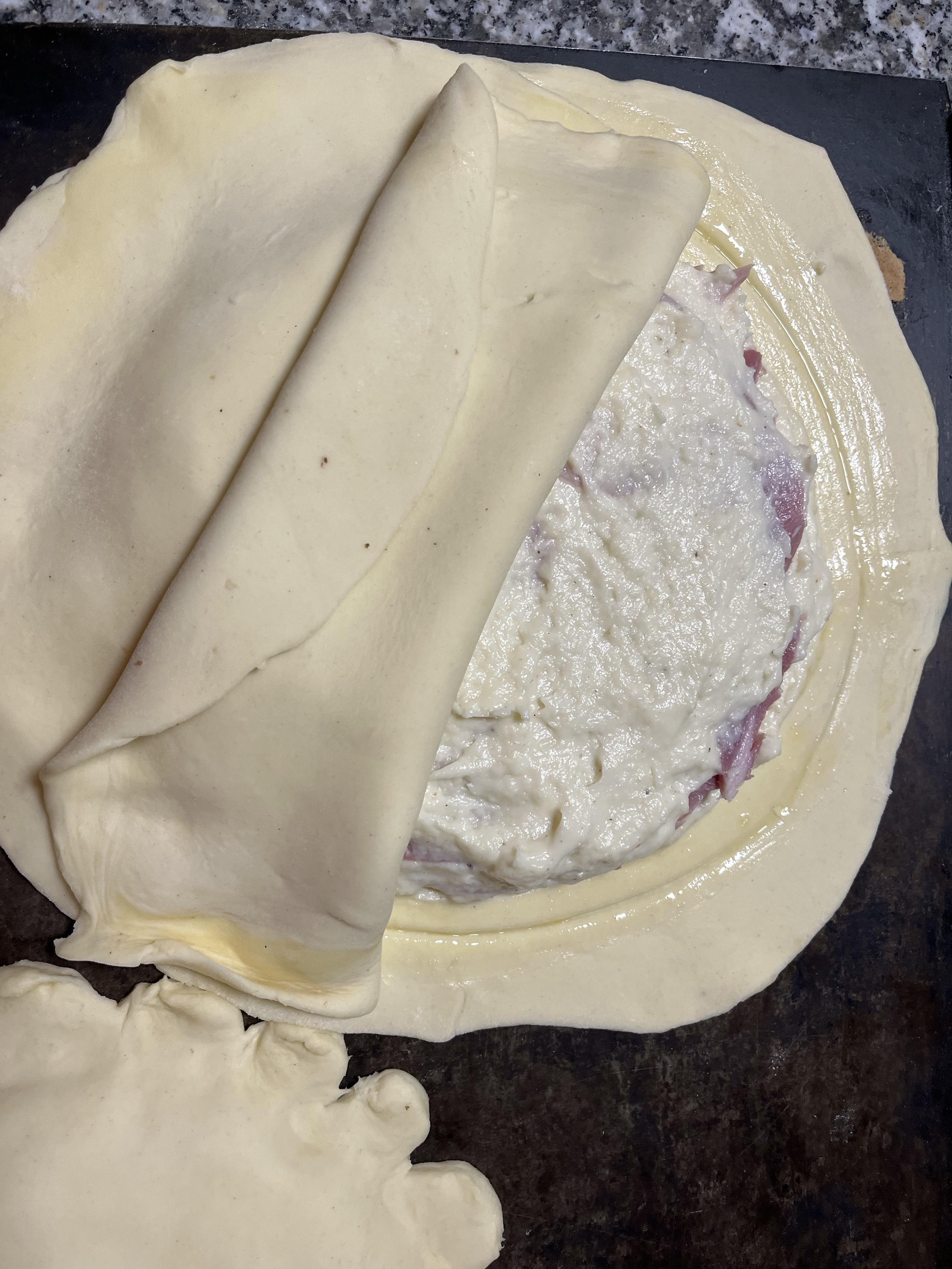 Après avoir humecter l'abaisse autour de la garniture